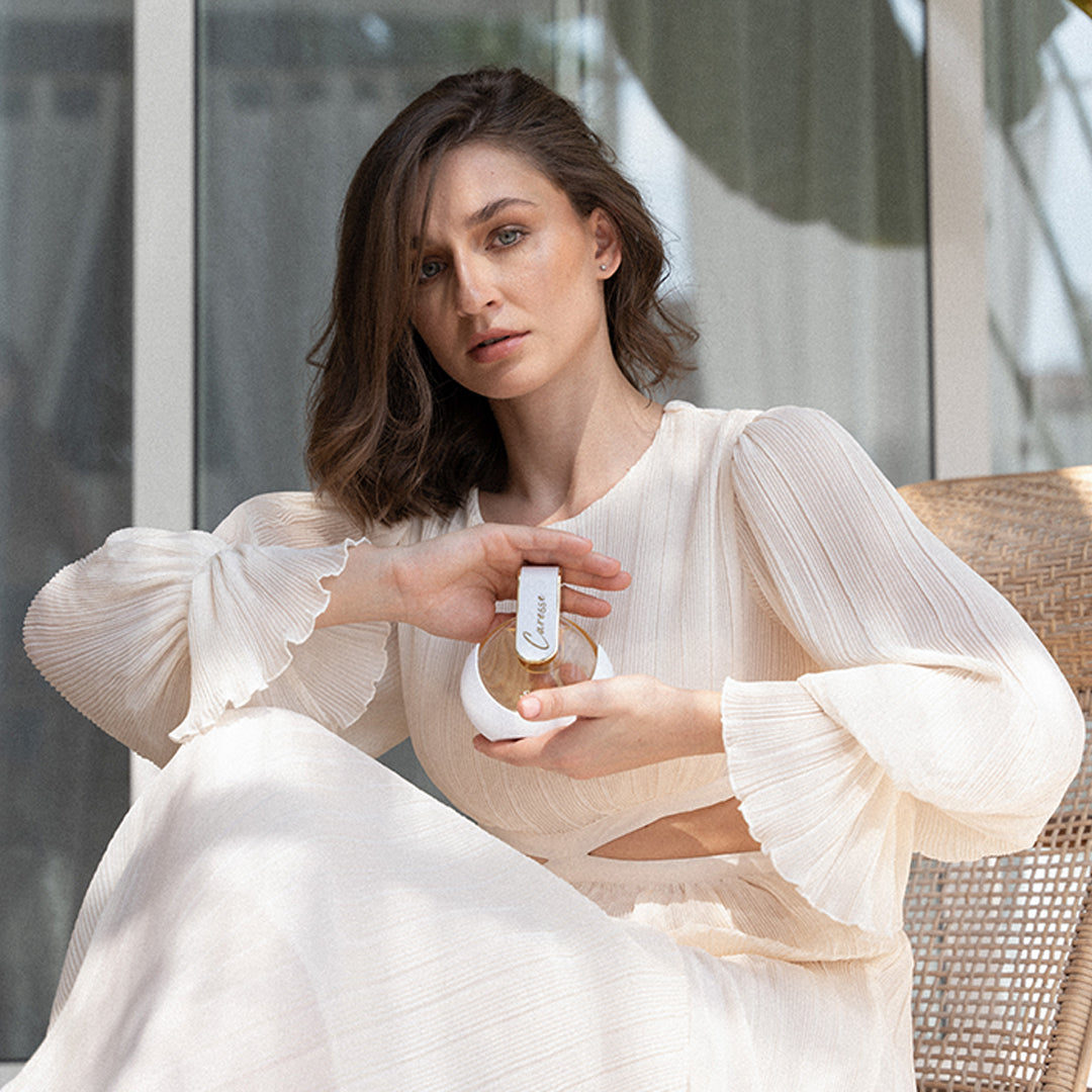 Caresse is an eau de parfum for women that radiates femininity and fun at any time of year. A delicate powdery fragrance, Caresse brings out your unique sensuality wherever you go. Whisper-soft musks make your steps light as air and make your dreams feel possible. A floral heart enhances your beauty and strength, while a gossamer caresse of vanilla enfolds you with the confidence you deserve. Caresse is the real you inside.